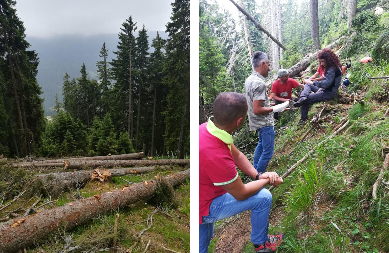 Figure 13: Photo impressions from conducting an 'on-the-job' interview right in the forest. Photo credits: R. Albertini