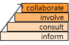 For defining different levels of actors' participation (right outer box in Figure 1) in the interaction with each other for knowledge exchange and co-creation we refer to Durham et al. (2014) and distinguish four levels: inform, consult, involve, and collaborate, where the level of participation continuously intensifies (cf. Arnstein 1969).