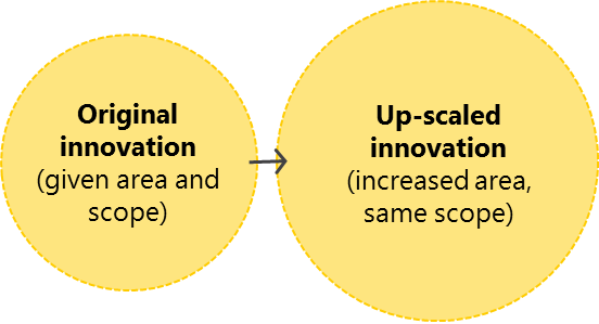 • Up-scaling, which refers to transferring an existing innovation with an initial geographical scope to a larger geographical area or higher administrative level, still including the original region and context (e.g. by raising demand for the provided forest ecosystem services and related products beyond the original area, engaging additional stakeholders with similar interests to increase the supply, including additional forest ecosystem services from another area to create a wider portfolio of offered services).